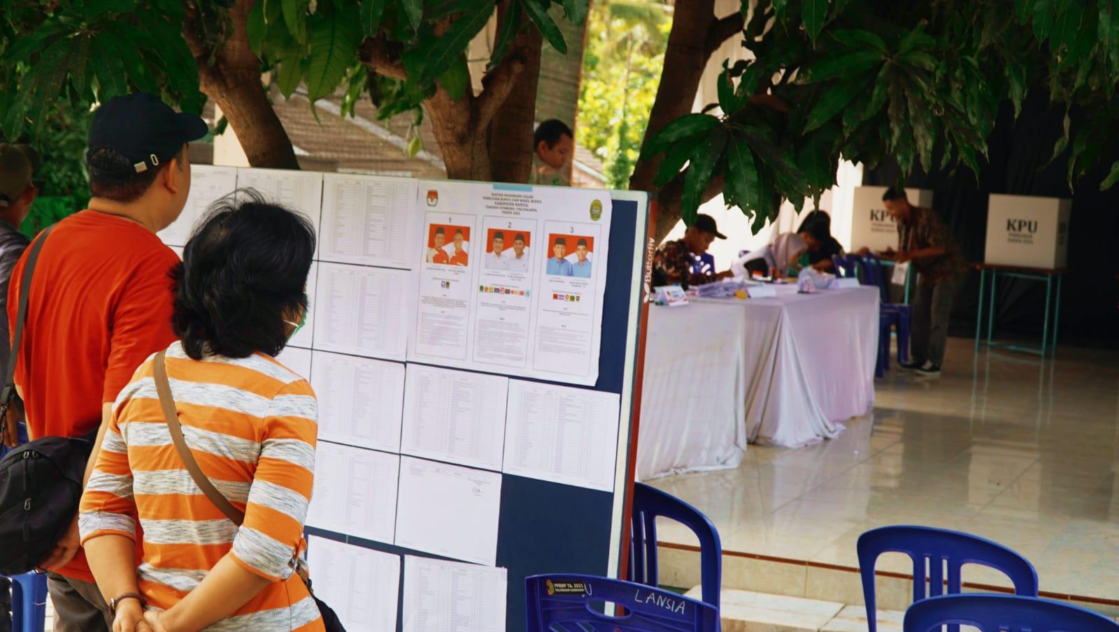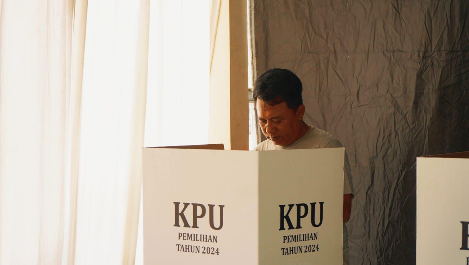 Momen ketika warga mencoblos pilihannya di bilik suara.